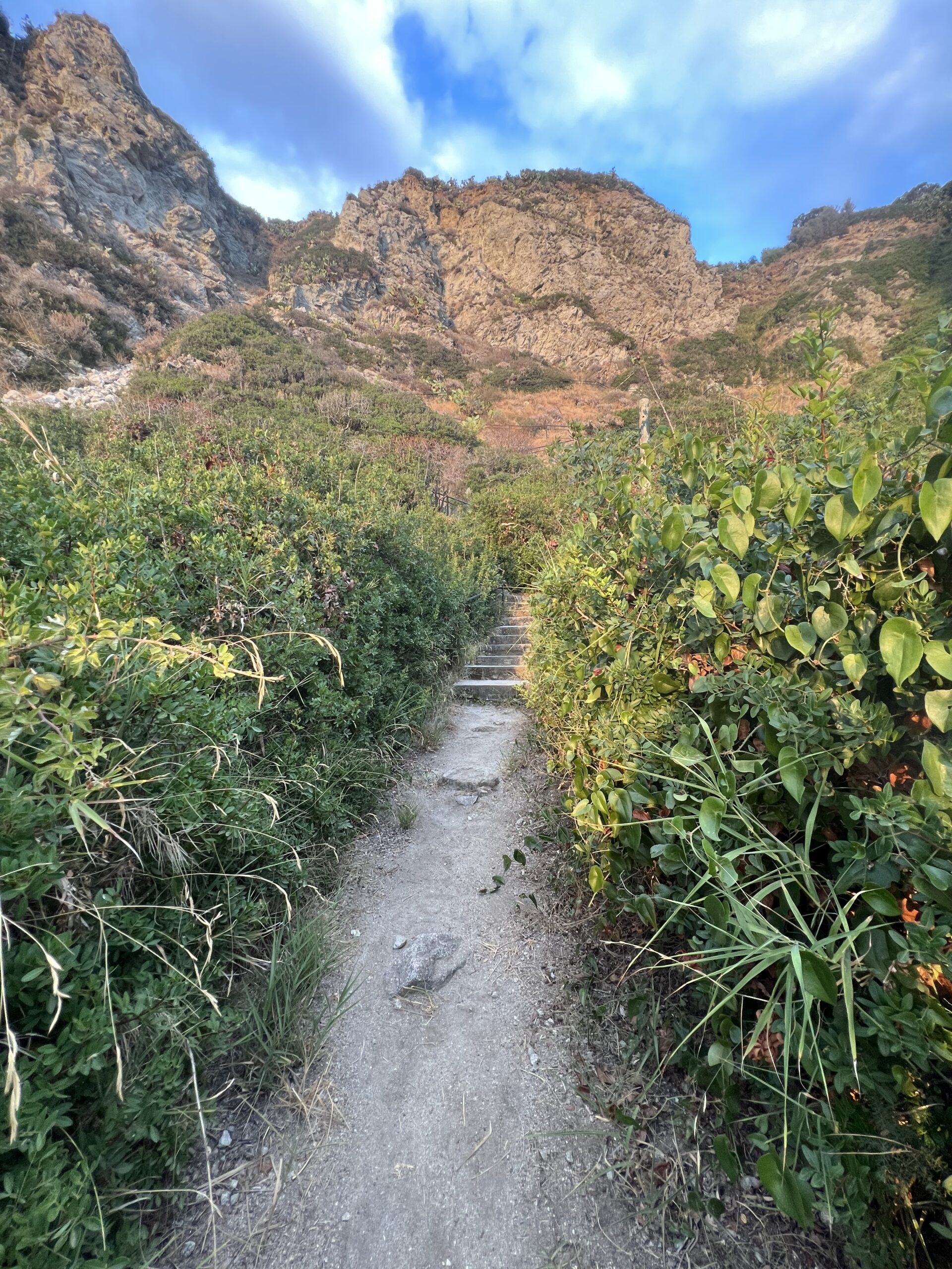 We spent about an hour there, sitting on the rocks and watching the sun about to set. We were preparing for our climb back up to the villa. Getting down was absolutely nothing, getting back up the 400 steps…..Omg. The good thing is every few sets there was a flat landing. We commented the entire time walking, how on earth did someone build this walkway? God bless whoever had that task of creating this stairway to heaven!