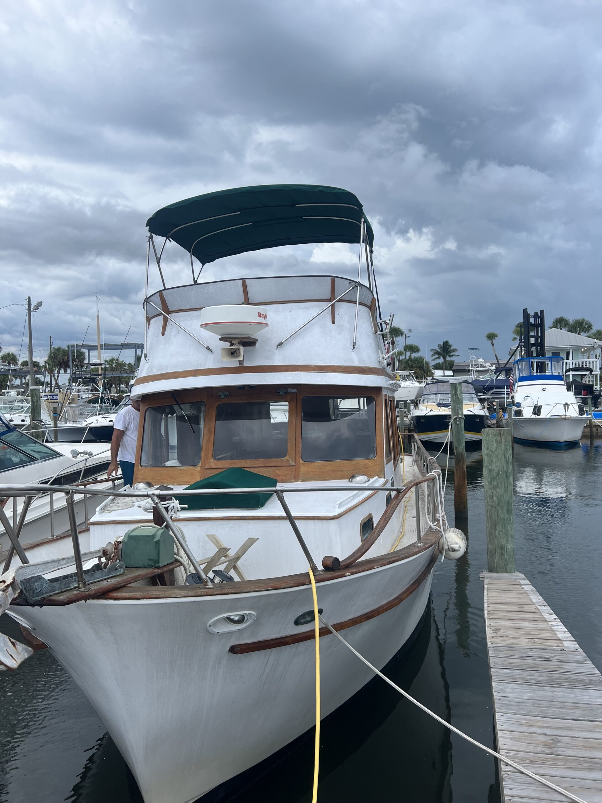 A 36′ Marine Trader Trawler. Ok daddy…..I feel you. I know you want Mike and me to go look at this trawler! My dad and I always talked about us getting a trawler. Before we moved back to Florida in 2020, he and I would talk about us purchasing a boat. He felt very confident Mike would be able to handle any upkeep and repairs it may need. Repairs it WILL need. My dad loved Mike so much, was always so proud of him, and knew he was capable of anything! Including loving a 1979 trawler!