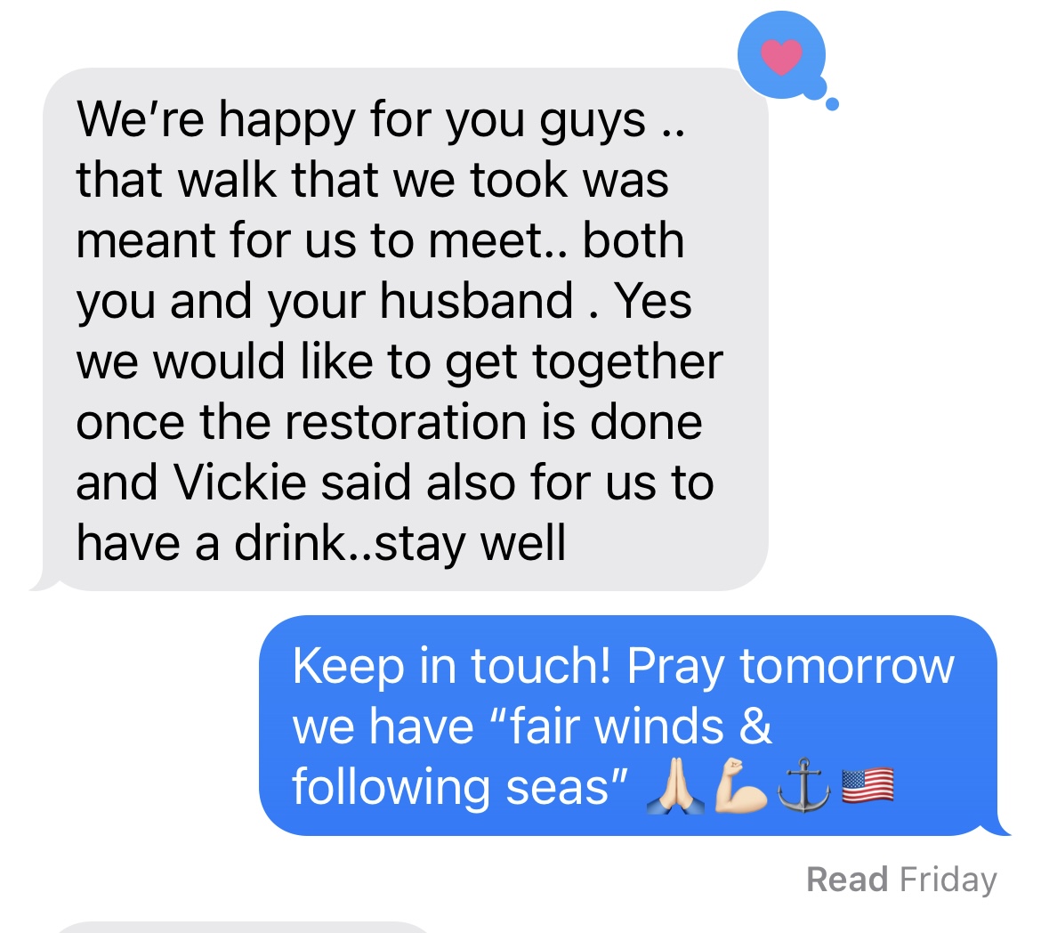 We are docking the boat in Sebastian at Cay Marine. Formerly known as Sebastian Marina and Boatyard. My dad actually lived in Sebastian at one point. When Mike and I were driving to Sebastian one day after looking at the boat (we had to go to the Marina to talk to the dock master about a slip), when we put in the address from Stuart to Sebastian it showed the arrival time was “12:26” pm. I looked at Mike and said look at our arrival time, it’s my childhood address 1226 Central Street, Stoughton, Ma. I just looked at Mike and said “it’s my dad”…..My dad loved boating. He loved his trawler and loved being on the water. He and I talked so much about Mike and I getting a trawler one day. From finding this one on the day of his passing anniversary 8/26 to seeing 1226 arrival time at our new marina, the signs were all around of his approval. His approval all the way from heaven.