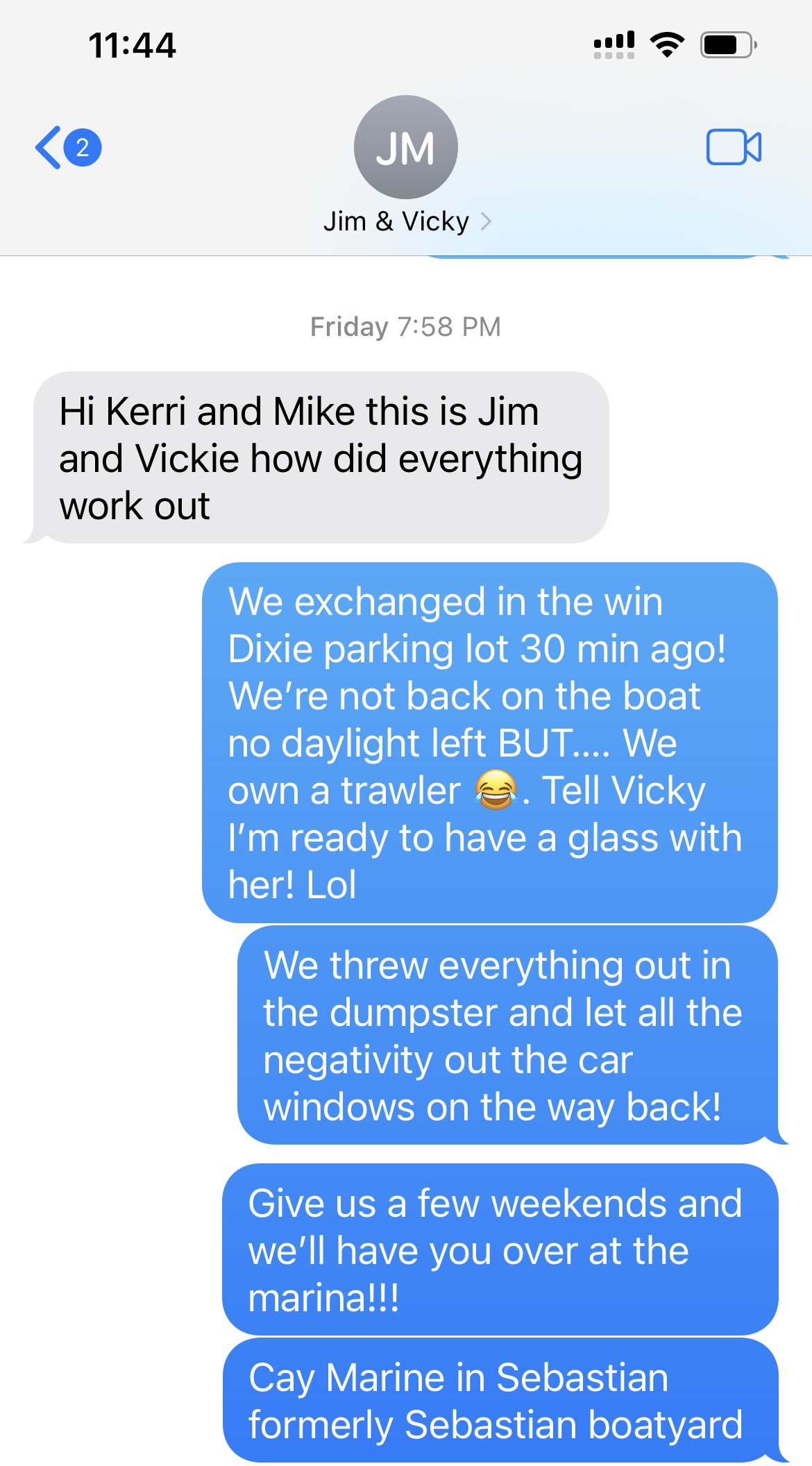In the meantime, once you buy a boat, you need a marina and insurance. I start calling marinas from Titusville to Sebastian. I hear from some with a 2-3 year wait list. OMG, are you kidding me? All week I am trying to secure a marina and insurance and waiting on this seller to message us back. The stress was high and we were getting very annoyed at her nonchalant attitude. She clearly was not as eager to sell as we were to buy.