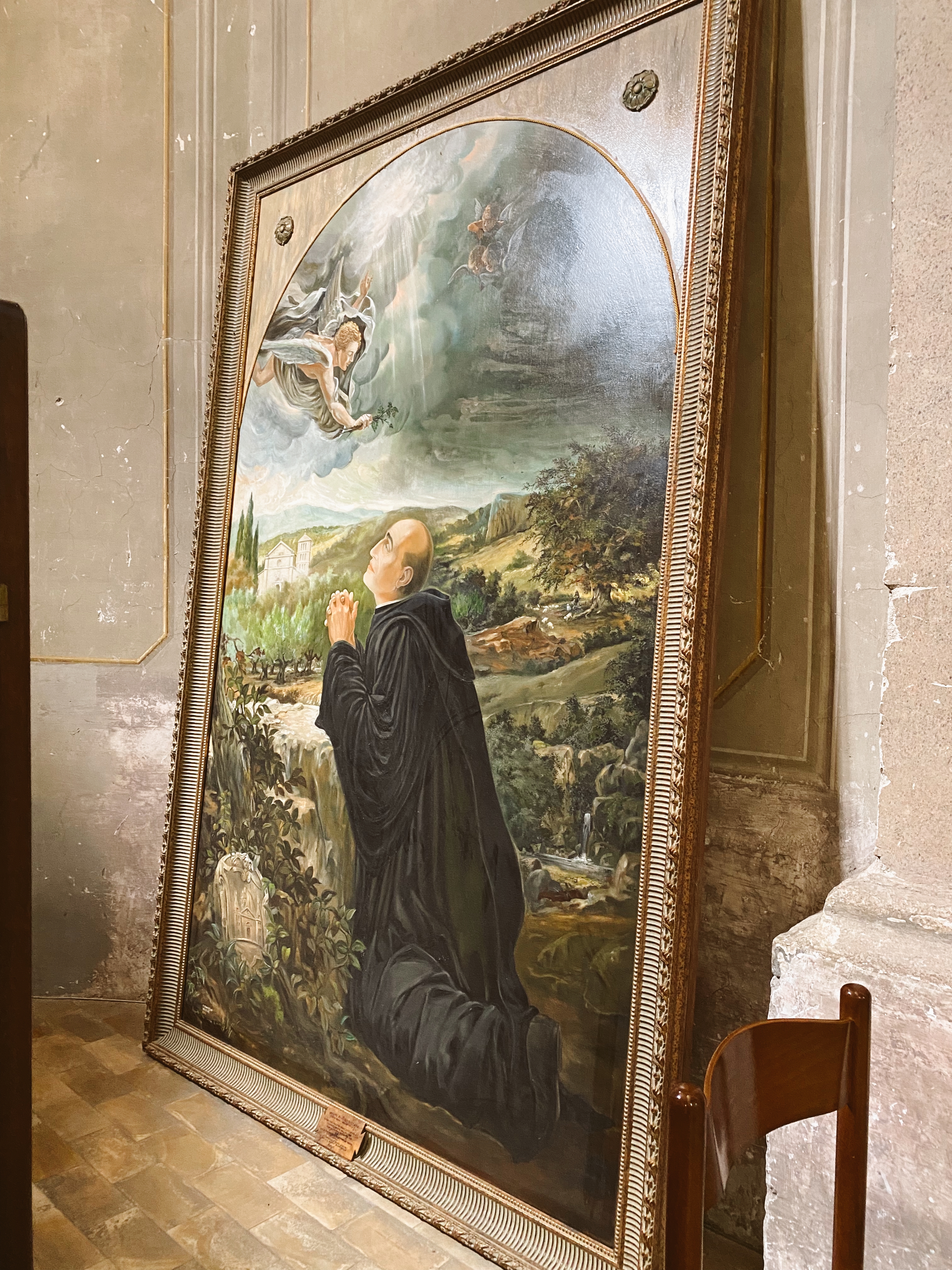 Today, we took Kailee and Lauren to a very special place ~ The Abbey in Farfa Sabina. This beautiful Basilica is dedicated to Mary. It dates back to the 6th century around 554. It’s in the most picturesque setting, up the mountain road. It’s isolated and secluded, surrounded by gorgeous trees and greenery. Yet, the most charming village is within. It offers the most spectacular view from up in the mountain. I think it’s a hidden treasures many overlook on their Italian vacation. It is worth the visit if you are in the area.