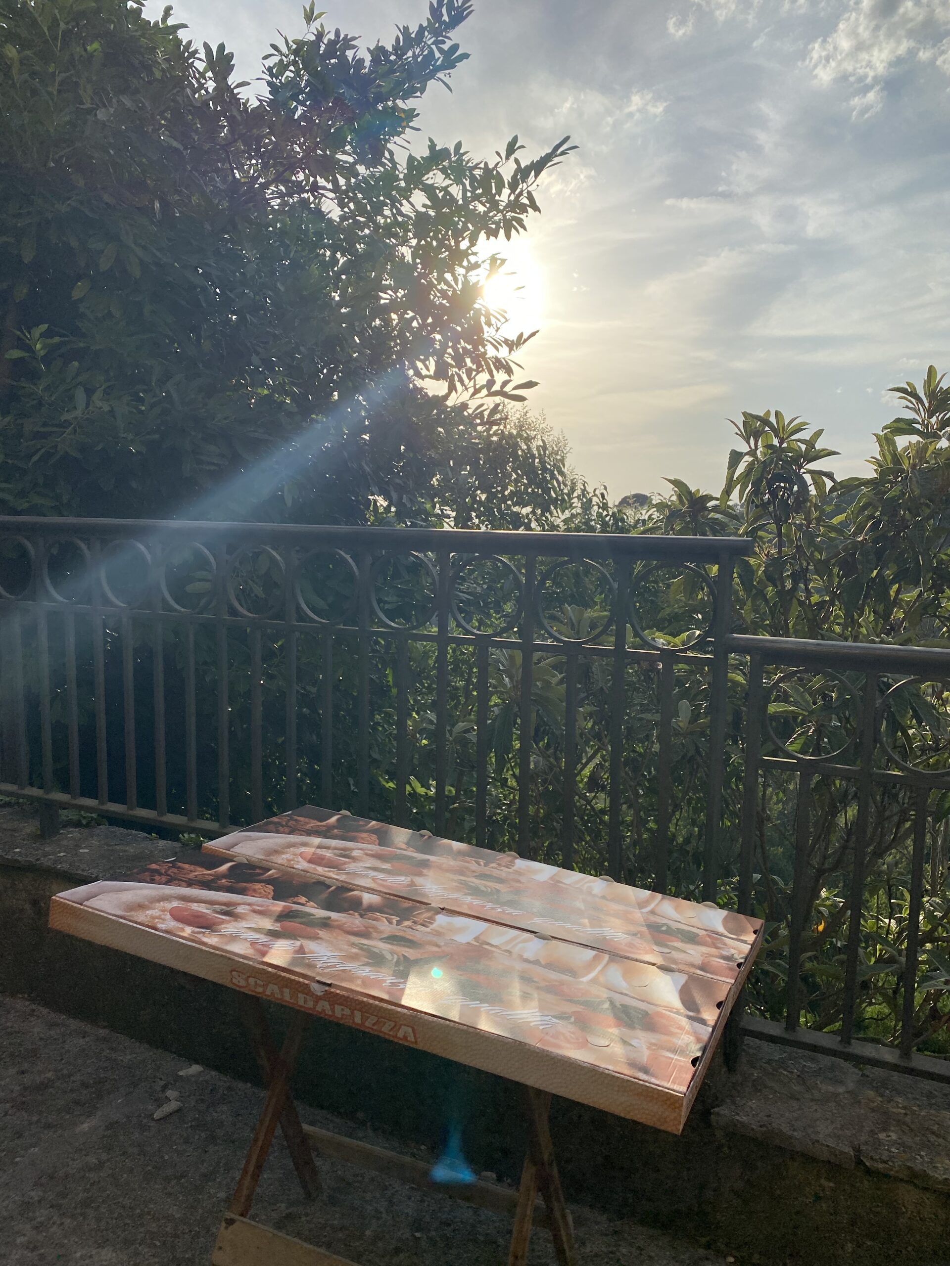 Pizza was what’s for dinner! The pizza came in the largest box we had ever seen. The table was full of everything perfect for a hot Italian summer night; the biggest watermelon, summer salads and of course the enormous pizza. The wine was plenty and of course, Lallo’s grappa. We sat for hours enjoying the company of our neighbors and friends. We actually got to meet new neighbors who only come to their home occasionally in the summer. Carlo, Daliah and their 2 children. Their front door faces ours. Fortunately, this dinner our other neighbors Luca and Rita (who live behind us) were able to join as well. The tables were full, the conversations were going and the sun was setting. It had the making of another perfect evening.