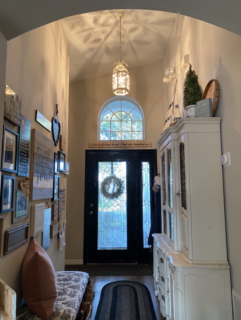 My plan for our entryway is a warm and inviting entry. I removed our wall gallery of random photos of the kids and signs etc. I love the family photos of course, however it seemed so busy. I will somehow incorporate the family pictures back into my space, but the wall gallery was not speaking to me anymore. Bye bye! We will switch out the pendant light and repurpose my shell pendant light from World Market. I love it. It’s gorgeous and I think the light will bounce so pretty off of the new paint color. I will add a favorite jute runner and my antique train station bench. It’s already looking so beautiful, the color is perfect and the space is coming together. It has only taken us almost over a year 1/2. But, in that time we did do that crazy thing and purchased a home in Italy. Something I am still in shocked with, in love with and now bringing Italy back home.